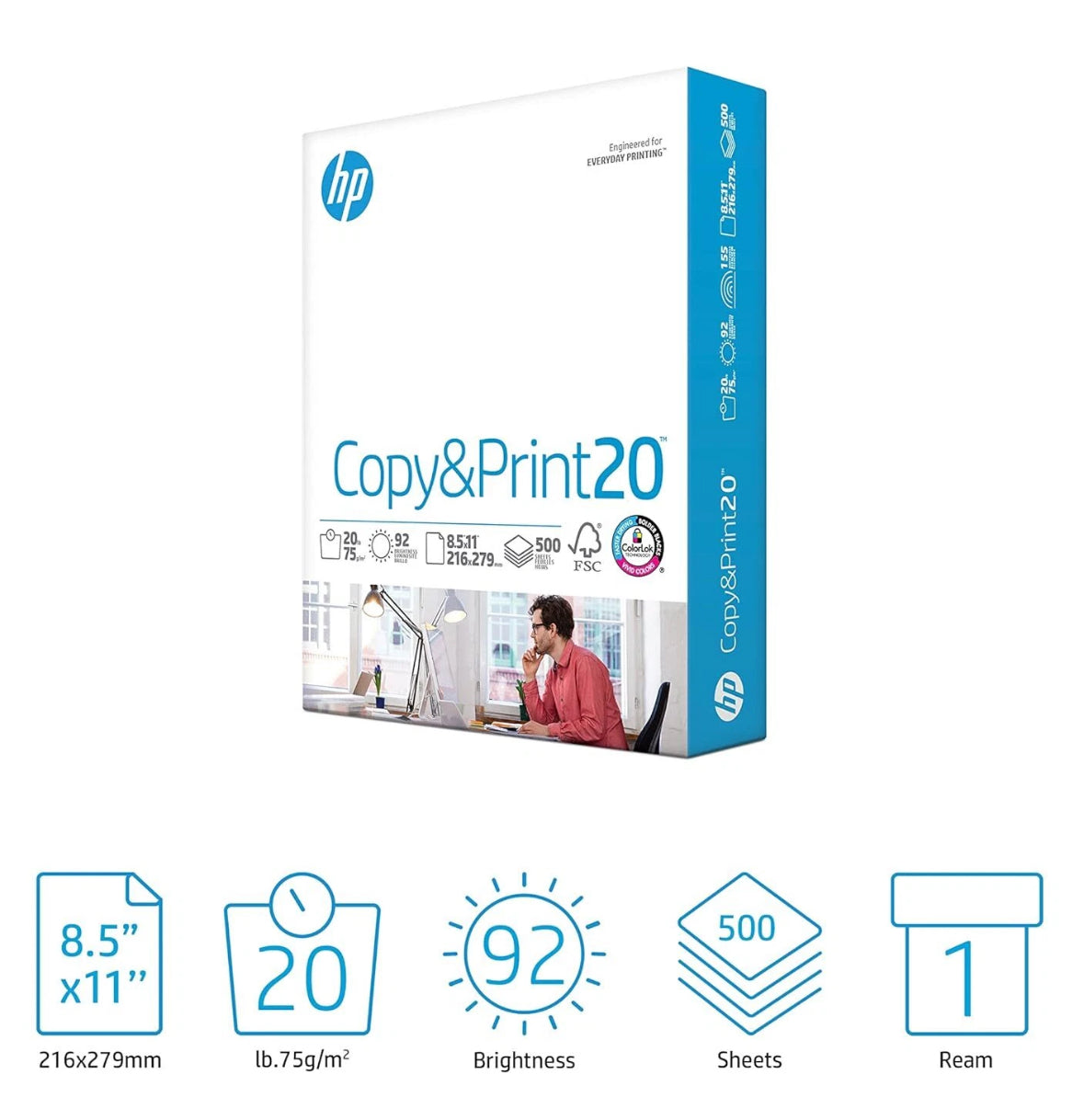 • Superior quality, reliability, and dependability for high-volume printing at home, at school and in the office; HP Copy&Print20 print and copy paper prevents yellowing over time to ensure a long-lasting appearance for added archival quality